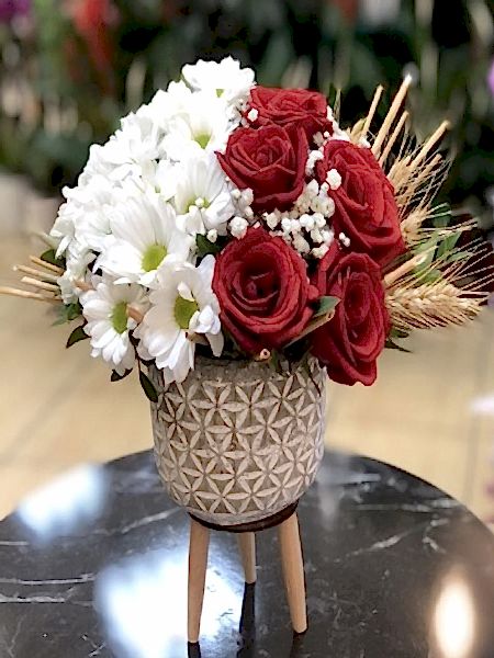 Ayaklı Saksıda Gül Papatya